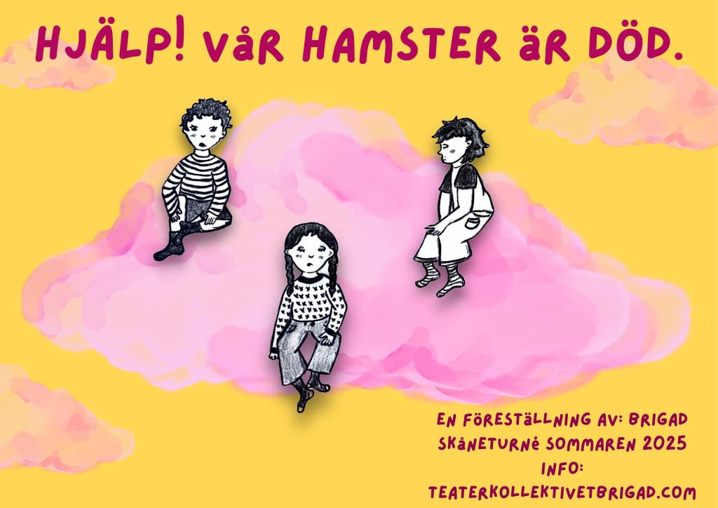 Hjälp! Vår hamster är död. är en berättelse som riktar sig till barn från 6 år. Pjäsen tas fram av det nystartade teaterkollektivet Brigad i samarbete med etablerade Banditsagor.